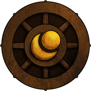 Généralement en bronze, rarement en bois ou en fer, le moyeu de cette roue représente les "Lunes en berceau", symbole de fertilité et de prospérité remontant à l'Âge Sombre et qui figure justement sur les pièces d'argent de la monnaie impériale. Le plus souvent, les lunes elles-mêmes sont cuivrées, argentées voire parfois dorées pour indiquer soit rang au sein d'une organisation, soit un taux de taxation (et les privilèges qui vont avec)...